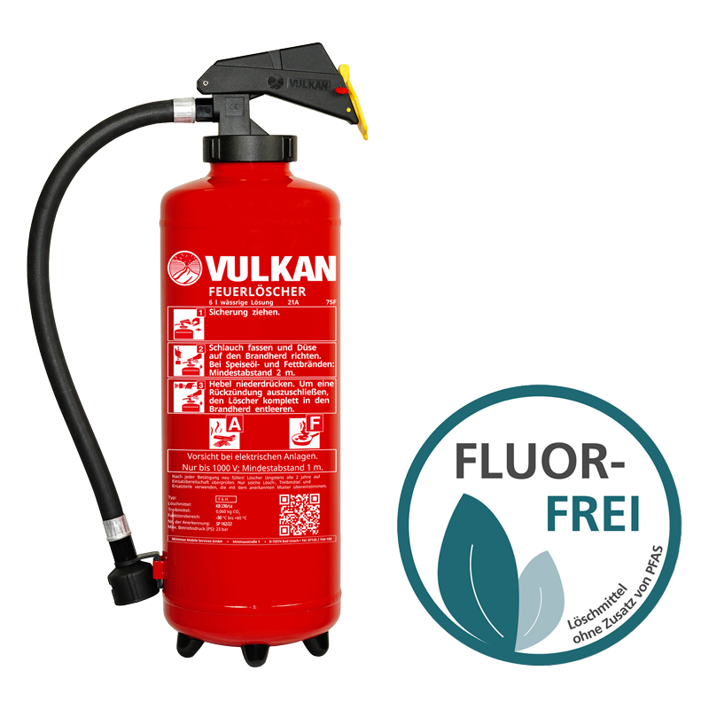 Vulkan 6 Liter Fettbrand-Feuerlöscher fluorfrei mit Hebelarmatur, F 6 H, DIN EN 3, Klasse AF